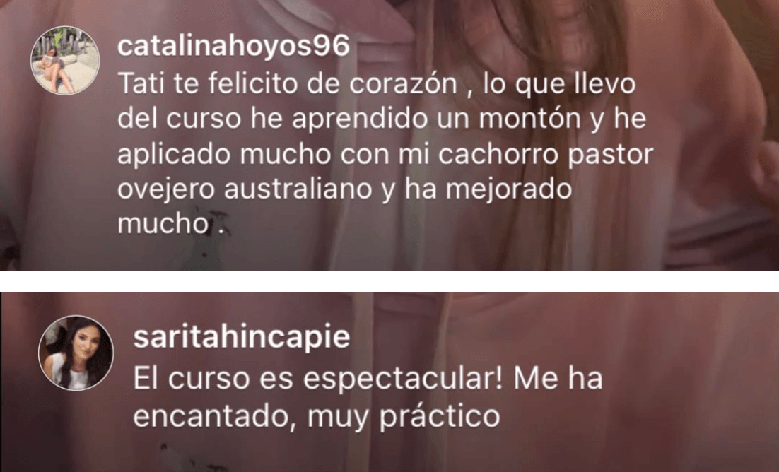 "Mi experiencia con Alegría Border Collie ha sido realmente increíble. Los cursos son muy claros y fáciles de entender. Tati tiene una manera espectacular de explicar y conectar con nosotros en cada video.