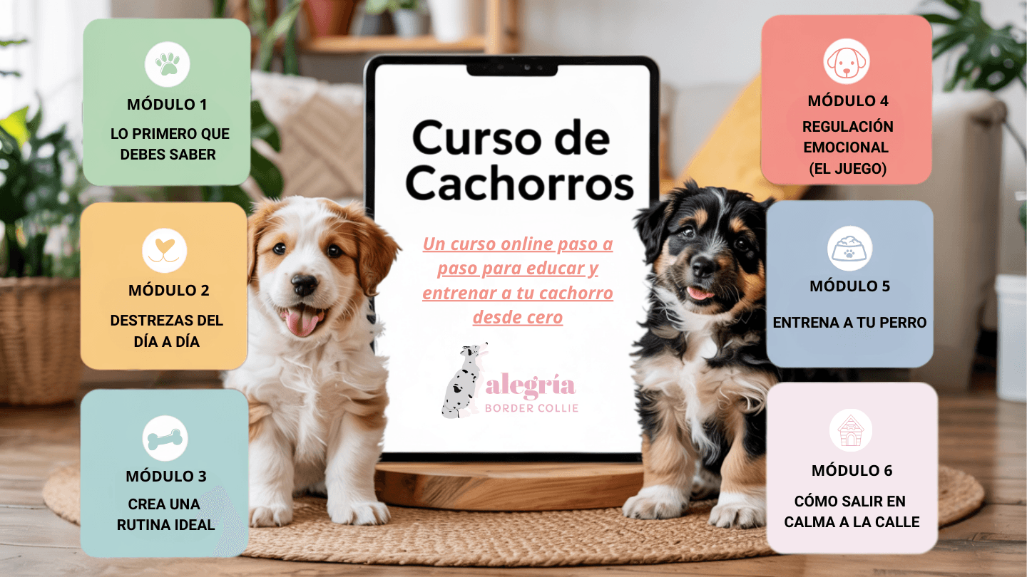Curso online paso a paso, creado desde la empatía y el respeto, para acompañarte en los primeros meses con tu cachorro. Aprende a construir un vínculo fuerte, prevenir problemas y guiarlo con confianza.