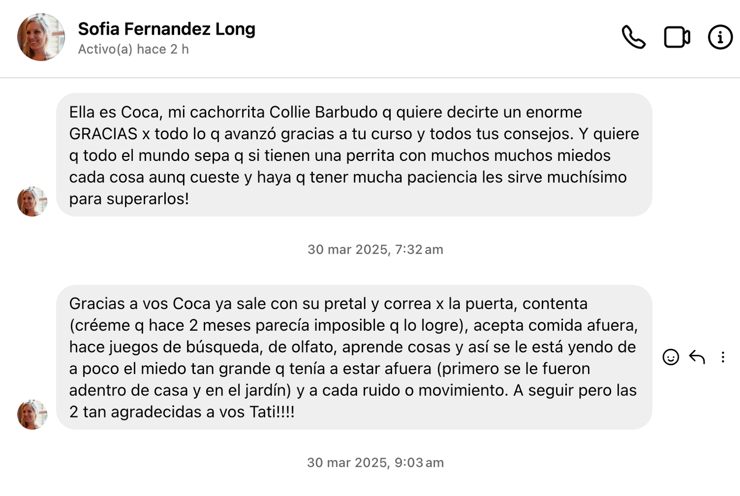 Me formé como Educadora Canina Internacional (IDTE) y descubrí mi propósito: ayudar a otros tutores que, como yo, se han sentido frustrados y con dudas sobre si están haciendo las cosas bien. Hoy, no solo he transformado mi vida con mis 7 perros, sino que también ayudo a otras familias a encontrar equilibrio, resolver problemas de comportamiento y construir relaciones basadas en amor y respeto. En mi programa comparto la misma metodología que aplico con mis propios perros y que ha ayudado a muchos estudiantes a lograr perros estables y tranquilos.