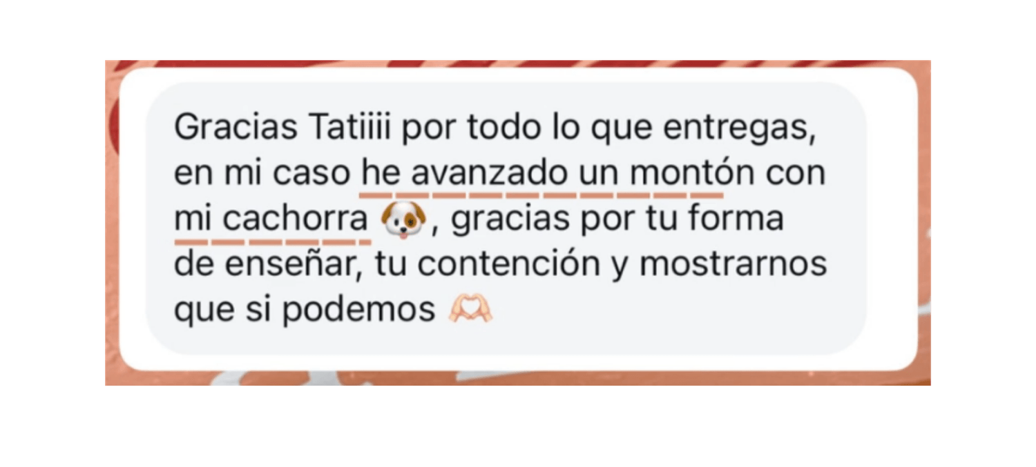 Me formé como Educadora Canina Internacional (IDTE) y descubrí mi propósito: ayudar a otros tutores que, como yo, se han sentido frustrados y con dudas sobre si están haciendo las cosas bien. Hoy, no solo he transformado mi vida con mis 7 perros, sino que también ayudo a otras familias a encontrar equilibrio, resolver problemas de comportamiento y construir relaciones basadas en amor y respeto. En mi programa comparto la misma metodología que aplico con mis propios perros y que ha ayudado a más de 600 estudiantes a lograr perros estables y tranquilos.