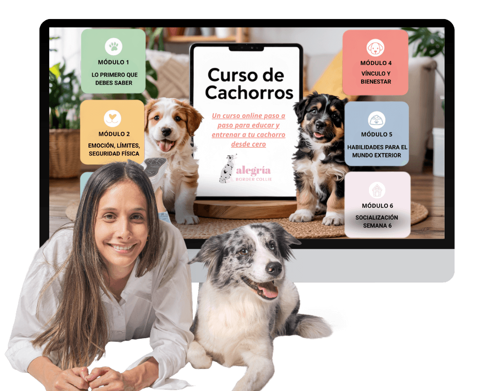El Curso de Cachorros es un programa online, paso a paso, diseñado desde la empatía y el respeto para guiarte en los primeros meses con tu perro. No se trata de adiestrar con castigos, sino de acompañar a tu cachorro a crecer en calma, confianza y conexión contigo.